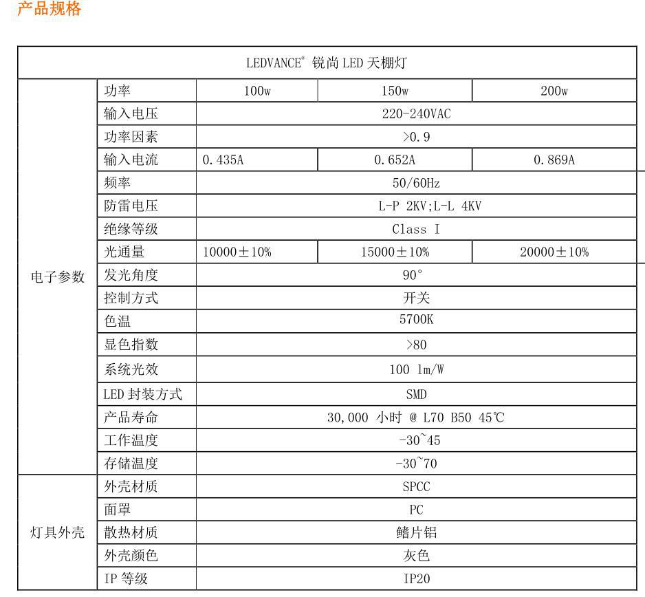 04.04.28.001.0427 锐尚LED天棚灯 适配200W铝灯罩 LEDV